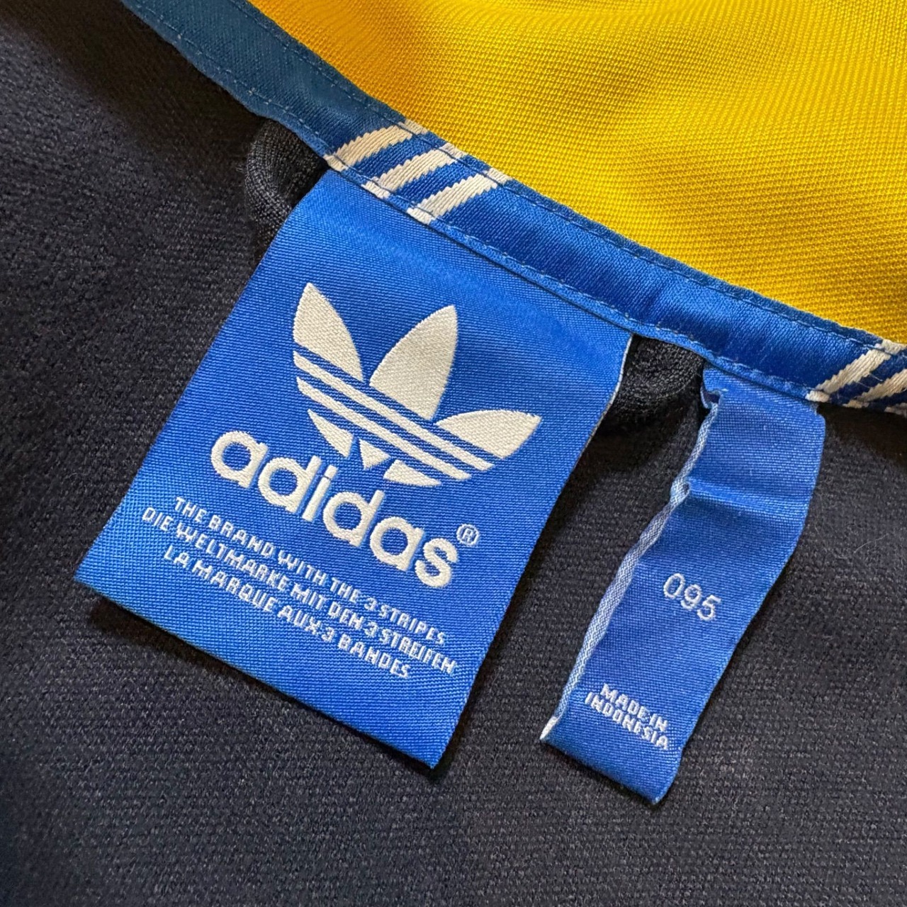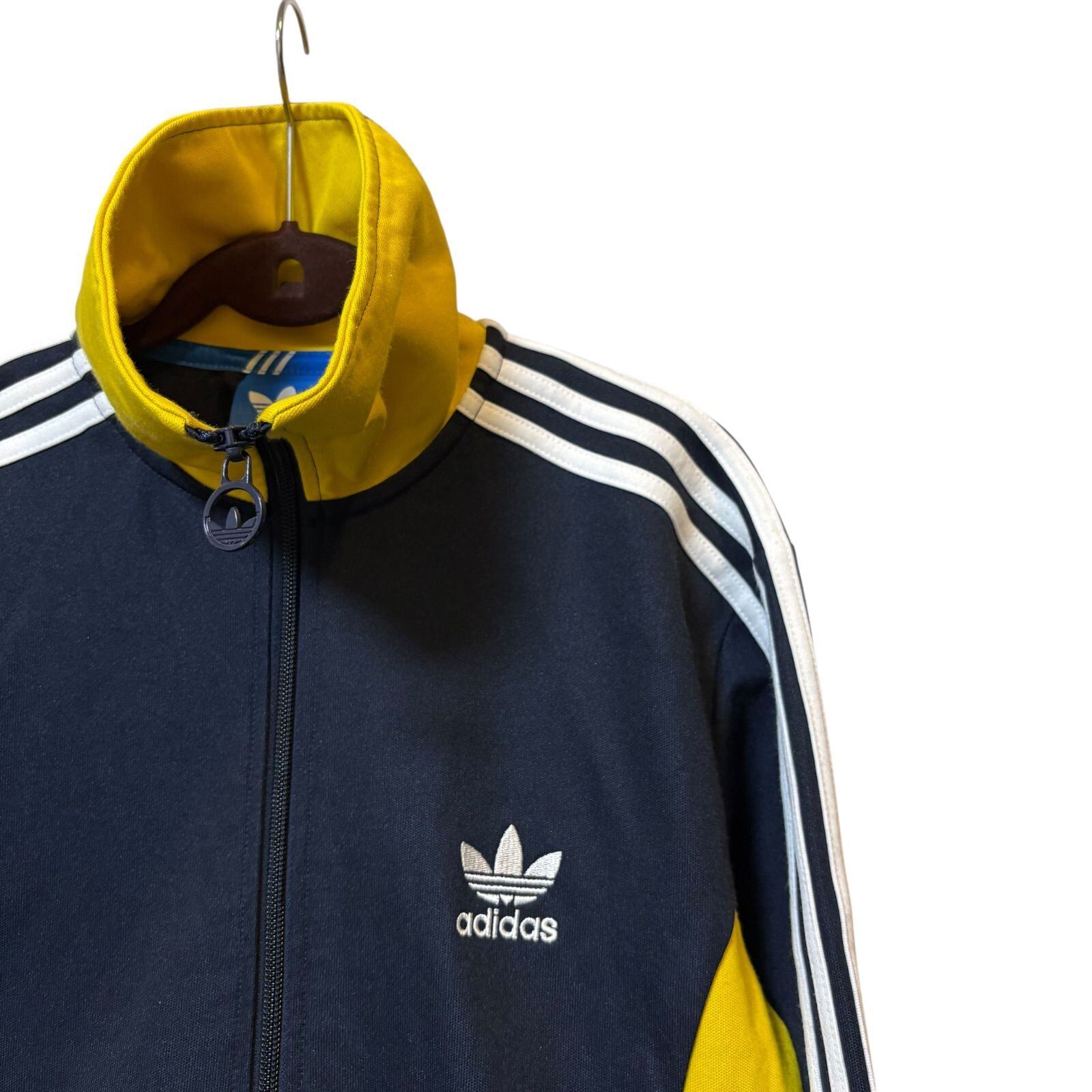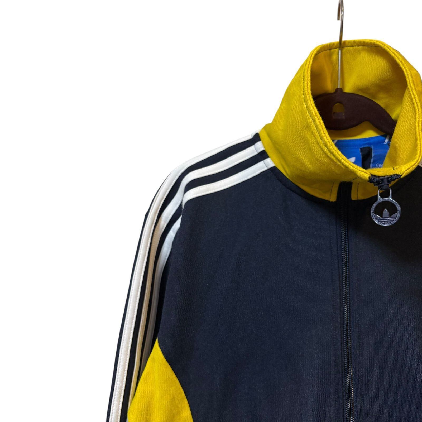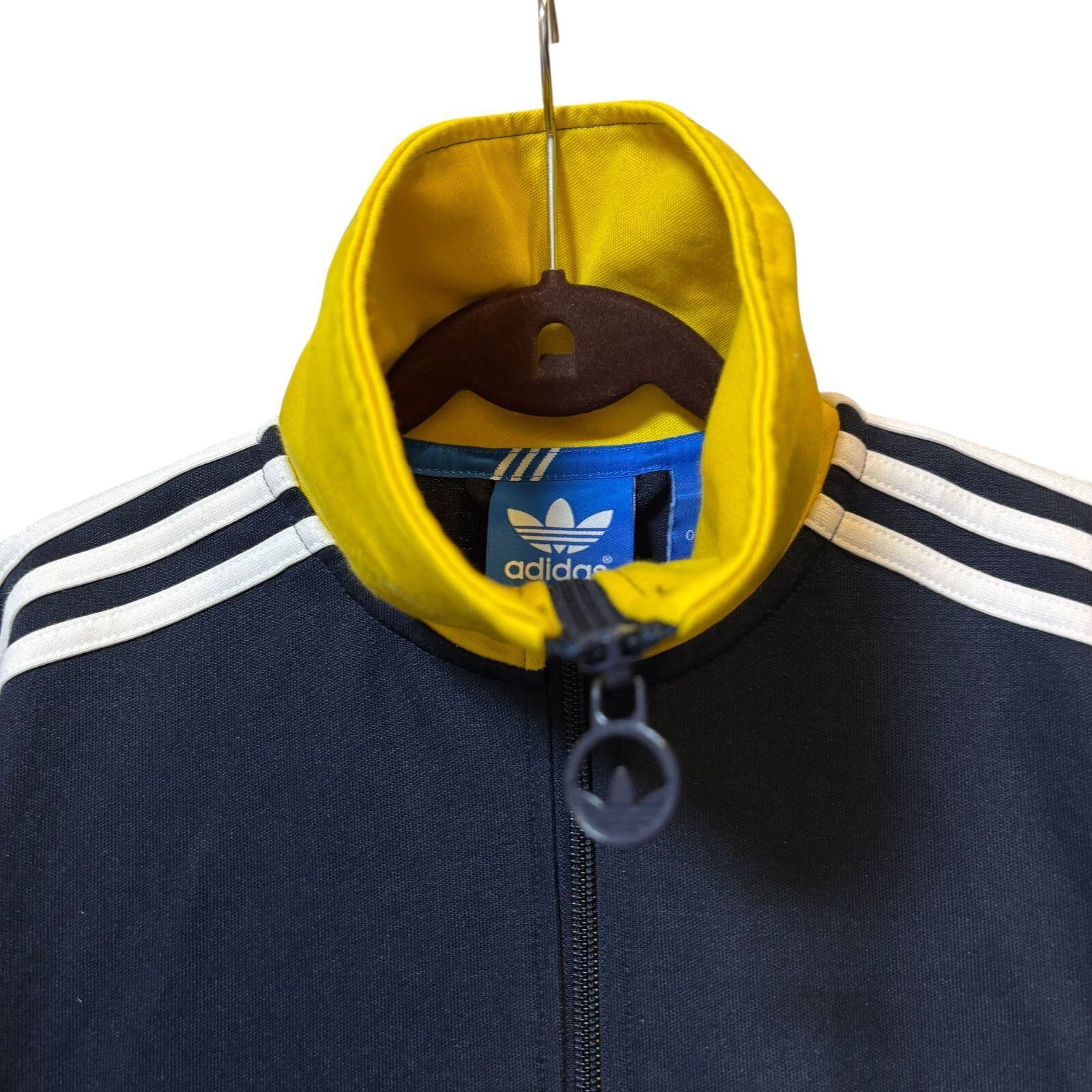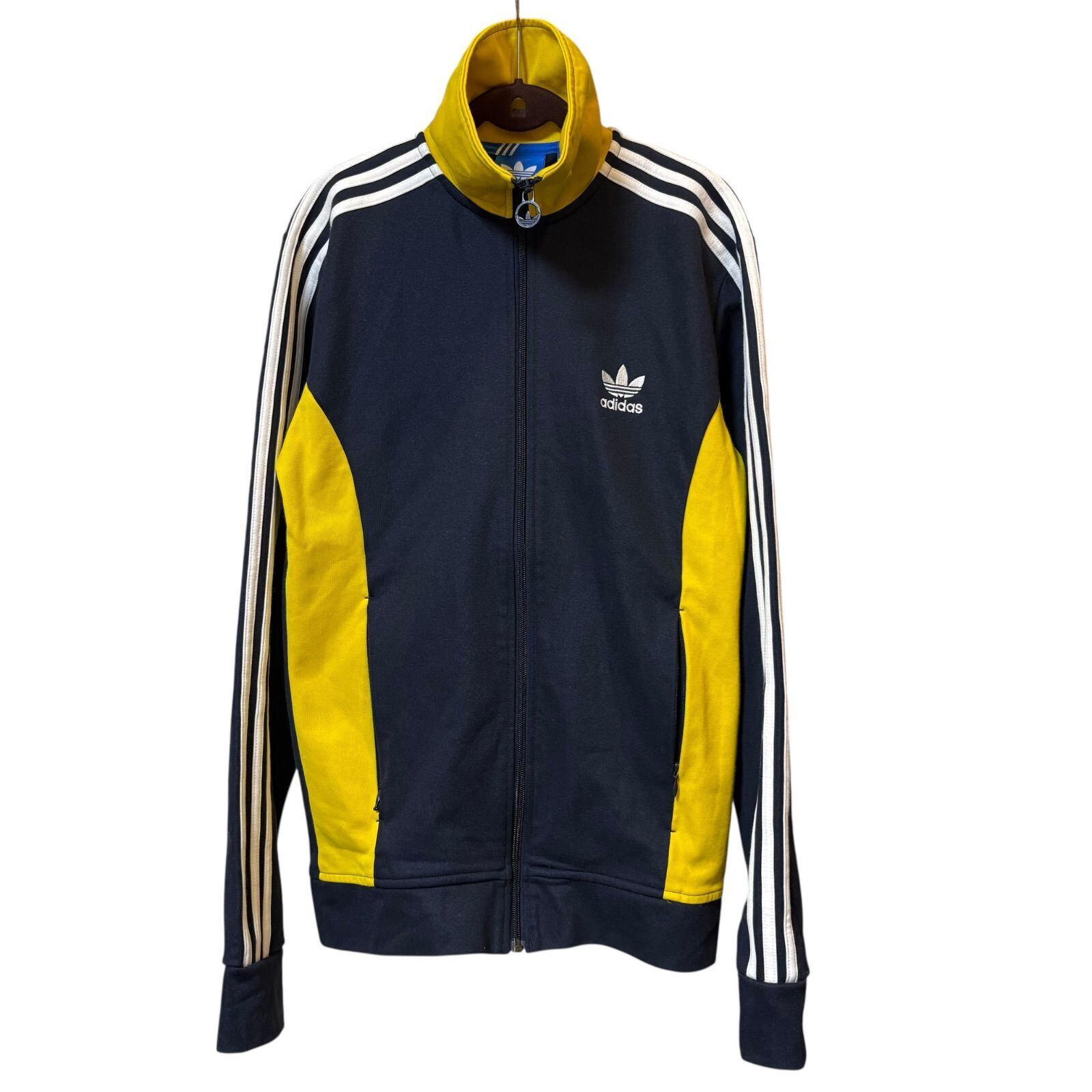 古着 adidas アディダス トラックジャケット スリーストライプス イエロー ネイビー 95サイズ Lサイズ 2512-511
