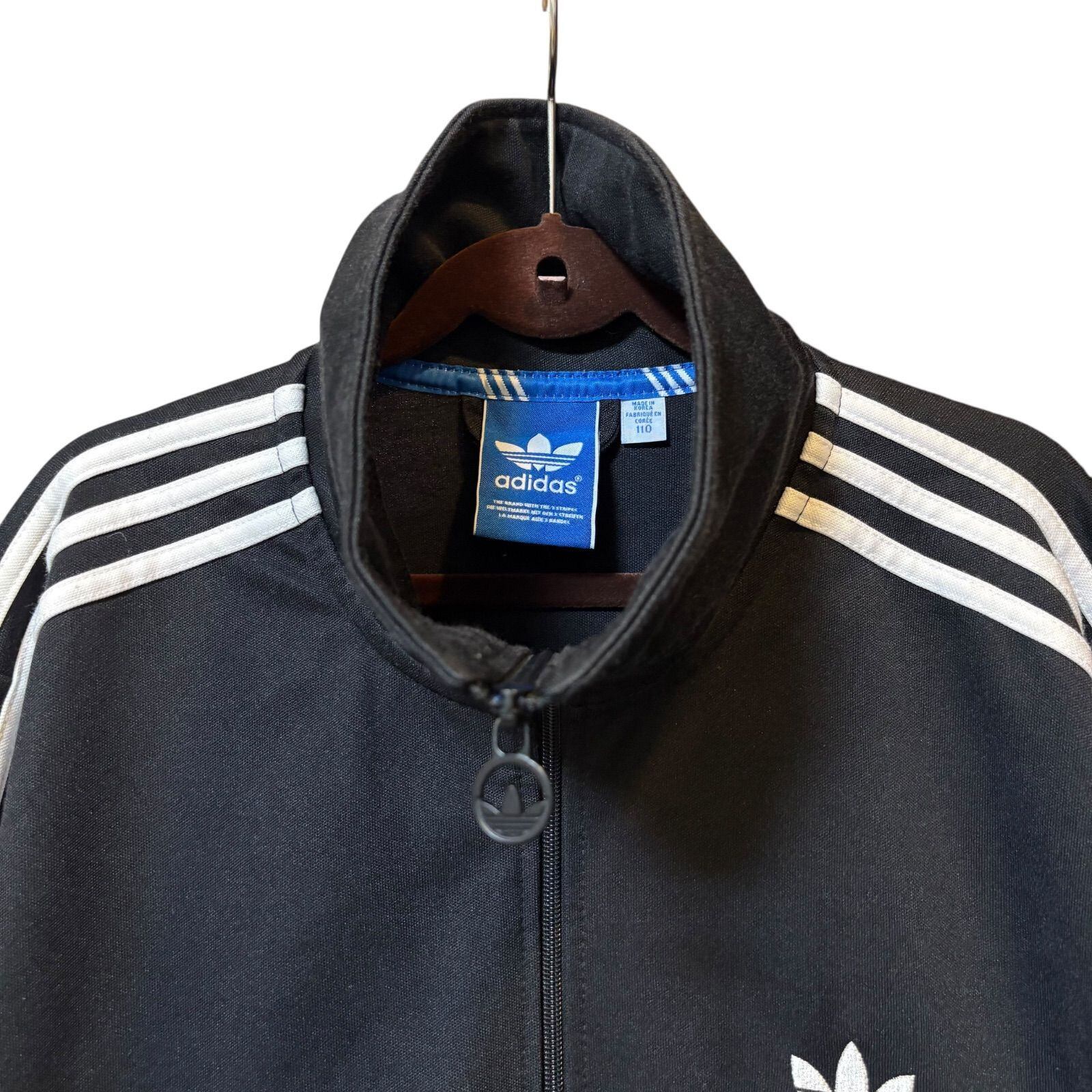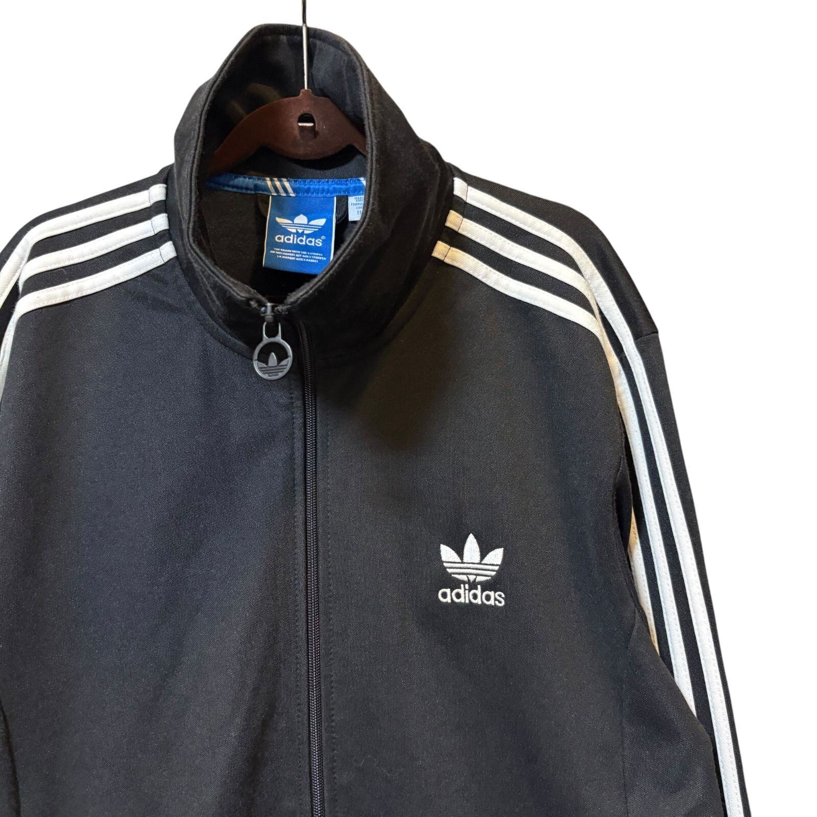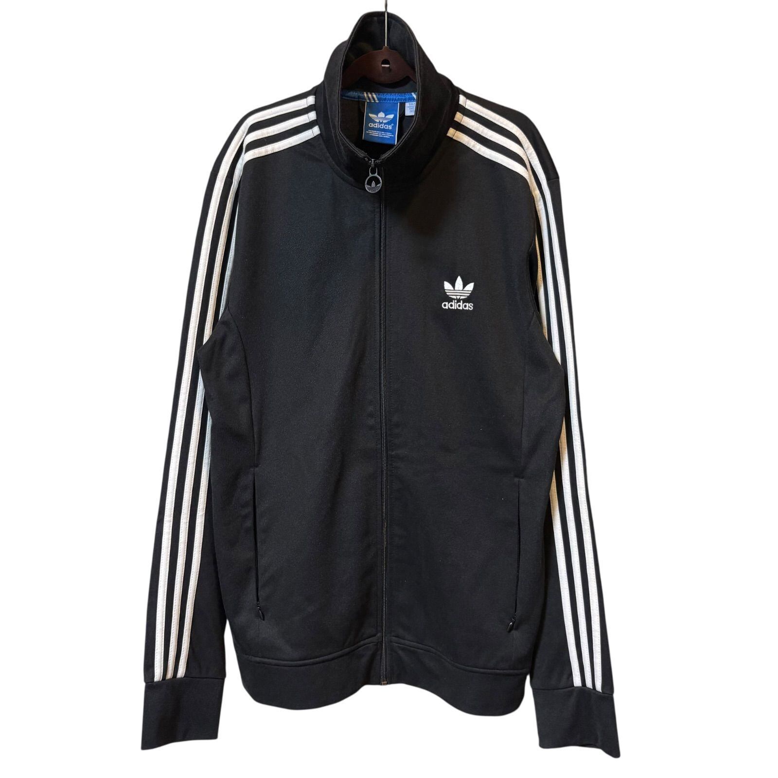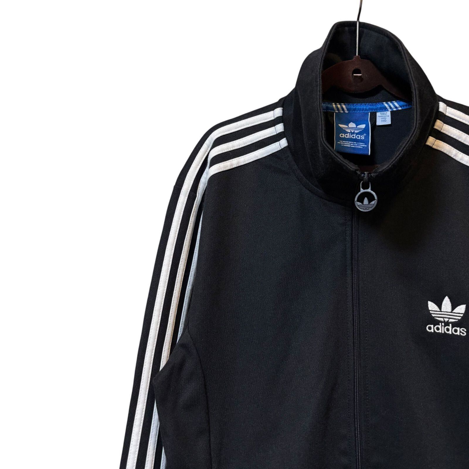 古着 adidas アディダス トラックジャケット スリーストライプス ブラック 110サイズ 3XLサイズ相当 2512-535