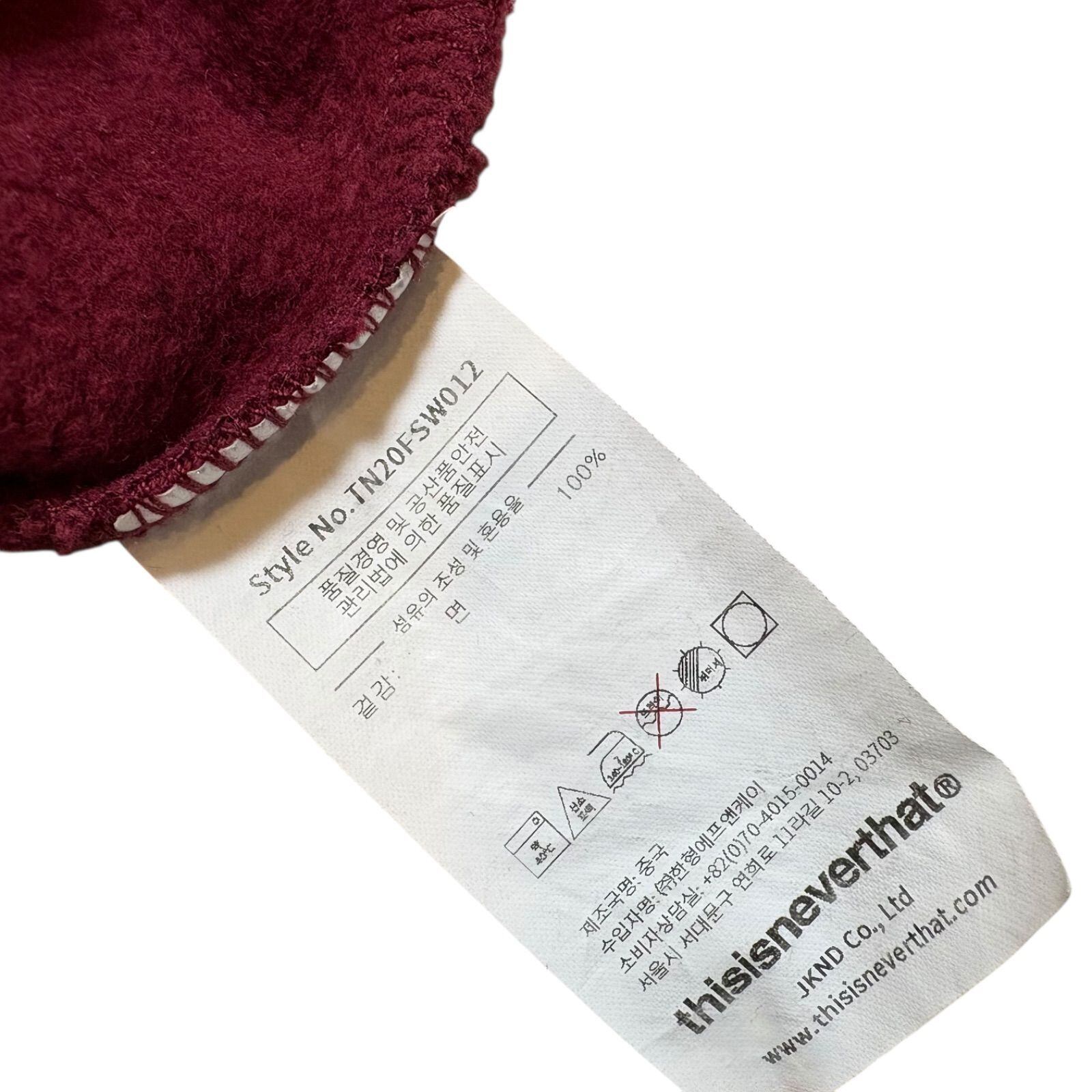 ディスイズネバーザット thisisneverthat スウェット Lサイズ ボルドー 2512-532