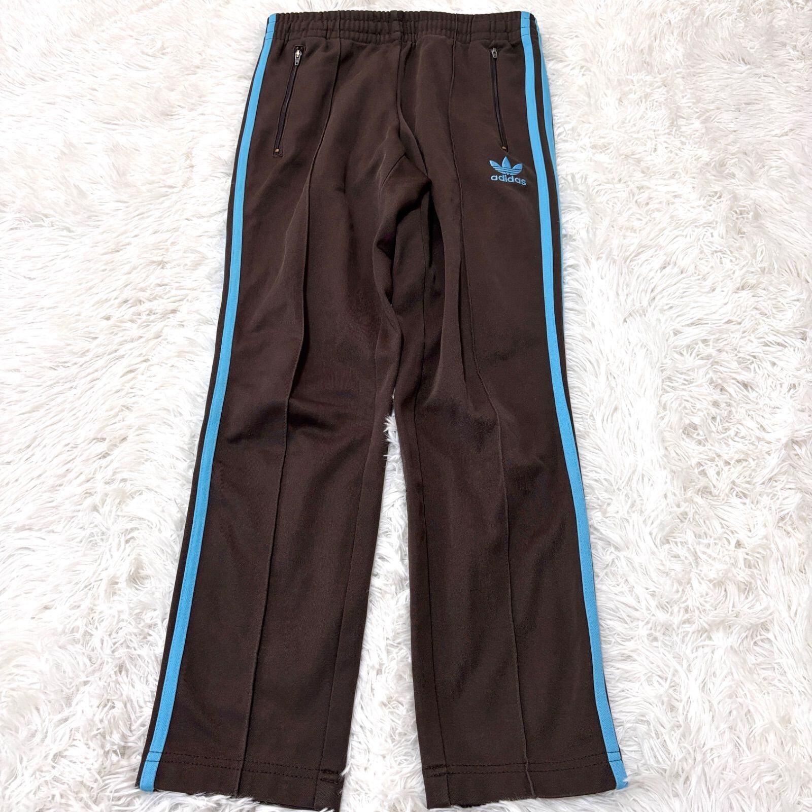 古着 adidas アディダス トラックパンツ スリーストライプス ブラウン ブルー 2512-448